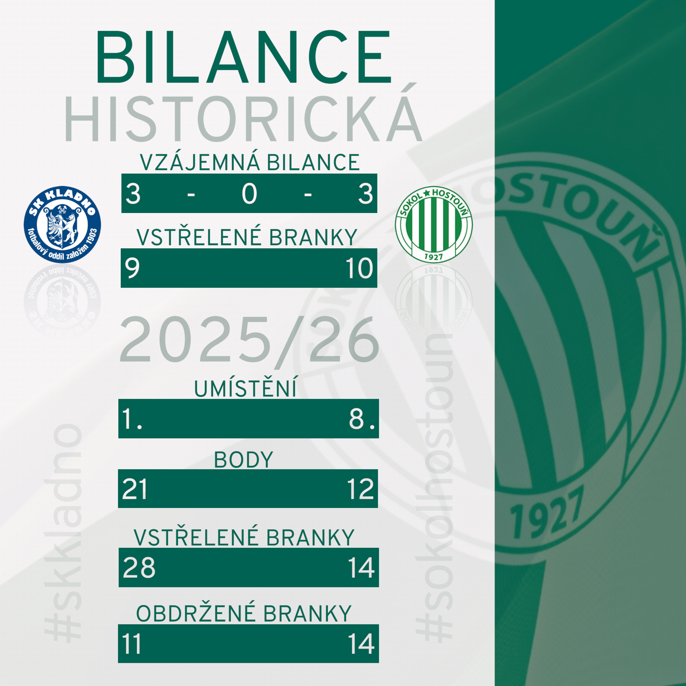 Po dlouhých sedmi letech se Hostouňští představí na půdě SK Kladno. V posledním divizním zápolení patřil Sokol k favoritům soutěže a nad kladenským SK si připsal v postupové sezoně 2018/19 dvě vítězství. V letošním ročníku však na sebe oba celky narazí v opačných pozicích. Kladenští patří k největším favoritům soutěže, pro Sokol je cílem se s nově budovaným týmem pohybovat v klidném středu tabulky. Výkop střetnutí na stadionu Františka Kloze je naplánován na sobotní 16. hodinu.