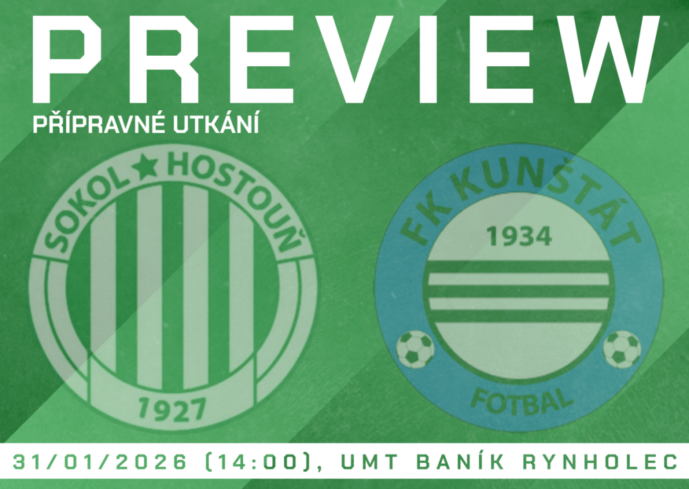 Hostouňští pokračují v zimní přípravě dalším netradičním soupeřem, tentokrát z Moravy. Do Rynholce dorazí FK Kunštát, celek z Blanenska, se kterým by se Sokol Hostouň v soutěžním zápase jen těžko potkala. Výkop je naplánován na sobotní 14. hodinu.