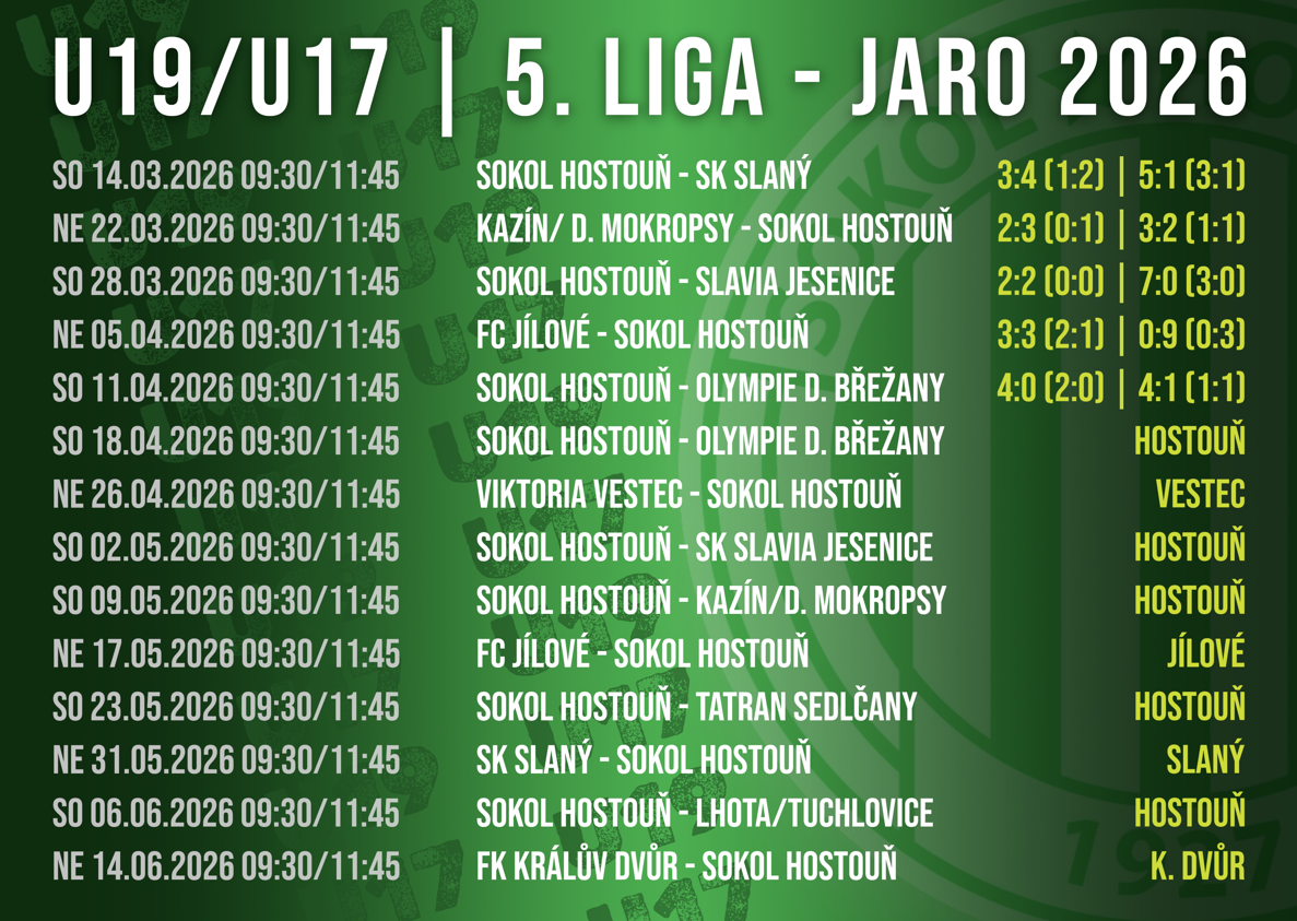 Jarní část sezony vstupuje do své rozhodující fáze. Dnešním dnem bylo oficiálně rozlosováno nadstavbové pokračování 5. ligy dorostu, ve kterém se představí jak starší, tak mladší dorost Sokola Hostouň. Oba týmy čeká v následujících týdnech porce devíti utkání, která definitivně určí jejich umístění v letošním ročníku.