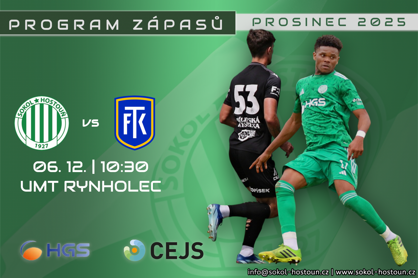 Během tohoto mezidobí čeká tým intenzivní práce v tréninku i herní test v podobě jednoho přípravného utkání. V sobotu 6. prosince 2025 od 10:30 přivítá v Rynholci Hostouň rezervu prvoligového klubu FK Teplice, tradičního soupeře z předsezonních i zimních příprav.